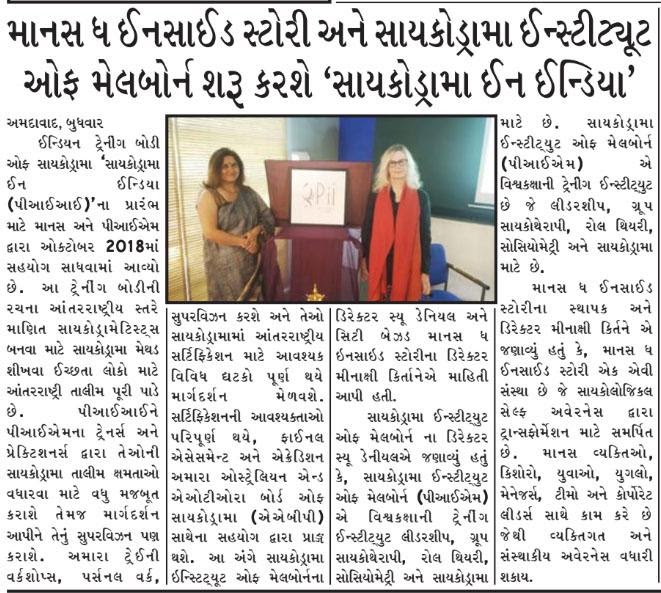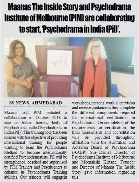 In order that the wider population knows about Psychodrama and PiI’s vision of developing well trained psychodramatists, a formal launch was organised on January 22, 2019 in Ahmedabad. The launch was widely covered by the local and national press and well as media channels.